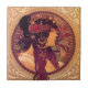 Byzantinehuvud: Brunett Alfons Mucha Kakelplatta