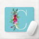 C Bokstav Initial Monogram Blommig Anpassad Färg Musmatta
