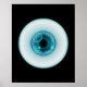Ett cybernetiskt blått öga med olika digitala visningar, inklusive cirklar, punkter och fyrkanter, en del upplysta och en del inte, med ett litet korsfäste i mitten och ord "vision" bakåt på högerna grund.