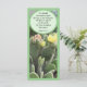 Det här vackra kortet visar en trädgård av gult som blåser blommor efter det första regnet i vår. Den bibelvända på framsidan är Sång i Solomon 2:11-12 som säger: "För åsna är vintern förbi, regnet är över och borta. Blommorna dyker upp på jorden, tiden då man sjunger har kom..." Ord på baksidan säger: "Det är dags för läkning och Singing att ha Kom.