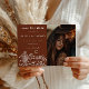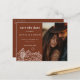 Cactus Line Art Desert Photo Spara datuminbjudan/annonsering har en rustik, cactus hand plockade-konst på en terracotta-bakgrund med modern och skripttypografi med ditt favoritfoto. På baksidan av vykortet för inbjudan finns information om din returadress och bröllop webbplats-URL. Med vår mall av hög kvalitet blir det så enkelt för dig att redigera Spara datumet. All text och färg kan redigeras.