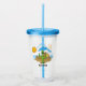 Tecknad av leende kaktus med solglasögon i ökenlandskapet med en öl mugg och ge tummar. Anpassningsbar på båda sidor.