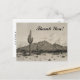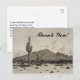 Tack för vykortsdesignen är ett ökenlandskap med accti och berg på framsidan, tillsammans med meddelandet "Tack!". Baksidan innehåller ett tackmeddelande från personligen.