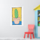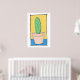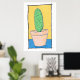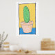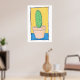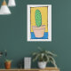 Denna poster har en enkel sammansättning, hand plockade med hjälp av pennor och vattenfärg, av en enda lobed cactus i en blomkruka. Bakgrunden är gult och blått, krukan är rosa beige och kaktusen är mycket grönt och spräcklig, allt inneslutet i ett tunt svart gräns, med ett vitt surroundljud. Det är ett lysande exempel på enkel, naiv konst.