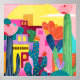En vibrant ökenscen med blomande kakti, färgstarkt geometriskt byggnad och en glödande solnedgång. Den fet färg-paletten blandar varma pinkar, och djupa blåsor, skapar en livlig sydvästlig atmosfär. Perfekt för att lägga till en varm och konstnärlig charm till vilket rum som helst!