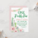 Cactus Twillingars One Prickly Pair Birthday Inbjudan Den här twillingarna första födelsedagsinbjudan innehåller en arrangemang blommar cacti för rosa, en banderoll och en modern kalligrafibild för penseldiagram.