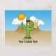 Tecknad för leende med solglasögon i ökenlandskapet med en öl mugg och ge tummar uppåt. Anpassningsbar.