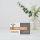 Caduceus doktor, modernt minimalistiskt grått, vitt, orange feminin affärskort med en svart caduceus doktor-tecken på vit och grått och vit bakgrund och texten "DOKTOR" i ett orange band. Perfekt öga-professionellens utformning av medicinskt affärskort för läkare.