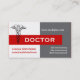 Caduceus doktor, modernt minimalistiskt grått, vitt, rött feminin affärskort med en svart caduceus doktor-symbol på vit grått och vit bakgrund och texten "DOKTOR" i rött band. Perfekt öga-professionellens utformning av medicinskt affärskort för läkare.