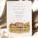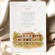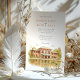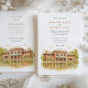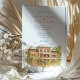 Inbjudan dina gäster till ett vackert firande med den här charmerande bröllopsinbjudan med vattendörsfärg, som visar den historiska Café Brauer i Chicagoparken Lincoln Park. Konsten fångar på ett utmärkt sätt byggnadens Prairie stil-arkitektur, med dess särskilda rödbruna/terracotta-tegel och grönt tak (särskilt det stora vakandet), som på ett vackert sätt reflekteras i det tysta vatten i den angränsande dammen eller lagunen. Scenen är omgiven av lush träd, deras löv som skildras i skuggor av grönt, gyllene gult och ljusbrun, som antyder en sen sommar eller tidigt höstambians. Den här inbjudan är perfekt för par att söka en elegant som ändå är naturlig för deras Chicago bröllop. Den eleganta informationen om bröllop på framsidan presenter, medan den omvända sidan innehåller "Finer-information" för gästinformation, vilket bevarar teckningen i picturesque. I paletten färg ingår varma rödaktiga, terrakottas, olika gröntar, gyllene , lätta och mjuka vatten.