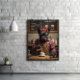 Den här krångliga väggkonsten har en Fransk Bulldog som rockar en röd och svart flanskjorta när han jobbar en kafferäck som en proffs. Med tjocka glasögon, en kvarn i ena tass och en espresso kopp i den andra, är han djup i "malningsläge". Fånig dricker namn som "Päls-rotto" och "Barkuccino" dekorerar menyn på kritan. Perfekt för kök, kaféer eller ställe som behöver koffein - och komedi