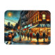 Perfekt för resan och kaffe älskare. Vattenskärningen som skildrar en daglig kvällsscen på ett litet kafé i Bronx, New York. Bilden fångar det pulserande gatulivet med fotgängare av olika utseende, vissa som kommer in i eller lämnar det varma kaféet mot en bakgrund av ett fläckfritt cityscape. Kaféets vintage ser ut med synliga tegel- och quaint-dekorationer, belysta av brunt ljus och omgivna av kvällens djupa skymningsljus, skapar en mysigt, stadsklimat.