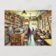 Vattenfärgsmålningen skildrar insida i en liten, kramad kaffebryggare i Vancouver. Utrymmet är hårt packat med bord av trä och dåligt avstämda stolar, vilket skapar en fast men mysigt atmosfär. Exponerade tegelväggar adorberas med framtagna fotografier och små krukväxter, vilket ger en personlig och rustik beröring. Den kompakta räknaren, som är gjord av återvunnet trä, har burk av pastejer och en vintage espresso maskin. En barista i en skjorta är upptagen med att betjäna en kundlinje, medan patroner sitter skuldra till bog, sipprar kaffe eller arbetar med bärbara datorer. Den varma gultens belysning och några strömmar av naturligt ljus från ett litet fönster förstärker denna livliga cafés intima charm