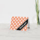 Tackkort med ett slumpmässigt prickmönster med vita cirklar i olika storlekar på en orange kaffefärgad bakgrund. "Tack" är tryckt diagonalt i vitt på framsidan över en diagonal svart rand i det nedre högra hörnet. Insidan är specialtryckt med din egen text, eller kan enkelt lämnas tom för handskrivna tack. Runt detta textområde finns samma slumpmässiga prickmönster, ett unikt element till skillnad från det typiska vita innersidan. Denna stil och färgskala gör dessa kort till ett lämpligt val för bröllopsfest, baby shower och födelsedagar.