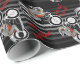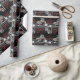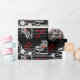 Snyggt, maskulintelegant omslagning av presenter med IconDoIt's sleek Art Deco-inspirerade originalmålning av en hjälmförare i silver på en elegant formaterad motorcykel. På en svart bakgrund med subtil grått rand och röd text "Zoom! Zoom!" och "Café Racer".