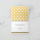 Tackkort med ett slumpmässigt prickmönster med vita cirklar i olika storlekar på en kaffefärgad gul bakgrund. "Tack" är tryckt diagonalt i vitt på framsidan över en diagonal svart rand i det nedre högra hörnet. Insidan är specialtryckt med din egen text, eller kan enkelt lämnas tom för handskrivna tackmeddelanden. Runt detta textområde finns samma slumpmässiga prickmönster, ett unikt element till skillnad från det vanliga vita insidan. Denna stil och färgskala gör dessa kort till ett lämpligt val för bröllopsfest, baby shower och födelsedagar.