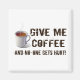 "Ge mig kaffe och ingen får ont!" Den här och bild i en brinnande hett kopp av mjölkkaffe kommer att tala om för till och med den dummaste personen hemma eller på ditt kontor att du behöver ett koffeinskott! Ett lustigt ordspråk för kaffemissbrukare i nödlidande teckensnitt