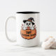 Caffeine Ghost V2 Two-Tone Coffee Mugg. Inuti en gigantisk pumpa, ett spökkaffe under den krokade häxhatten. Boo-hoo? Det är mer som en korv, det är gigglar, skummustasch glöder. Happy halloween, koffeinvänner är vakna!