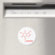 Kaffein - vit magnet med röd skrift och 2D-molekylmodell.