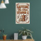 The warm brown-and-cream color palette and distressed retro finish give it that authentic 1950s–70s coffee-shop feel. Whether you hang it in your kitchen, coffee bar, home office, or café, this poster instantly makes the space feel warmer, funnier, and more caffeinated.