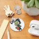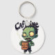 En cirkulär nyckelkedja med en tecknad zombie som håller ett kaffe kopp som lyder "Caffeine Behållas Me Alive" med "Caffeine" i ett droppteckensnitt ovanför dess huvud.