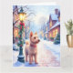 Bring holiday joy to the season with this delightful Christmas card featuring a Cairn Terrier on a snowy village street. A glowing lamppost, holly accents, and soft snowfall create a warm and festive atmosphere in watercolor style. The blank interior leaves plenty of space for your personal holiday wishes, perfect for dog lovers and seasonal correspondence.