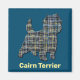 Cairn Terrier hund silhouette gult, blått och svart rutnät linjer abstrakt mönster. Anpassa med ditt namn eller din hundar under rasformen. Kairoskräckerna betraktas som intelligenta, lojala familjejordbruk som anpassar sig till de flesta miljöer. De är verkliga livräddare och ytterst aktiva hundar.