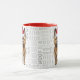 Mugg har en snygg hund i Kairn Terrier som bär en julhatt. Bakgrunden till mugg är täckt av en upprepande mönster av ord "svullnad". Bilden är ljus och glad, och det skulle vara perfekt för en jultemad gåva.