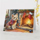 Cairn Terrier Sitting Fireplace Christmas Lights Kort
