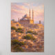The detailed cityscape below, with its textured rooftops and sunlit minarets, evokes the charm of Cairo at golden hour. Perfect for travelers, history lovers, or anyone seeking sophisticated wall art with a cultural soul, this poster adds a romantic and globally inspired touch to any room.