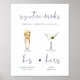 Denna utskrivbara mall för signaturdryckskylt har en handskriven teckensnitt och en modern minimalistisk design med en färgkombination i marinblått och vitt. Vattenfärg-grafiken är handgjord och 15 populära drycker ingår i denna lista. Klicka på "Redigera med hjälp av designverktyg" -knappen i personaliseringssektionen för att se dryckerna som ingår. Varje dryck är dold så klicka på det lilla ögonlocket bredvid drycken för att visa den.