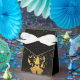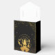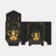 fondo negro con purpurina dorada con ramas de arboles arboles con casa de bruja dorada.
