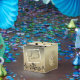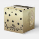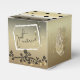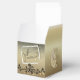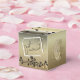estilo clásico con toque excepcional un fondo dorado y rosas en la parte frontal de la caja y mariposas doradas en los dos laterales con brillo con un poco de sombra en la tapa de la caja.