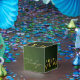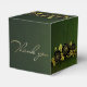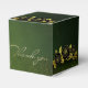 Caja de regalo verde con flores doradas presentaskar