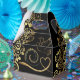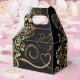 con un fundo negro y decoración estilo oriental con dorado y unas palomas en los 2 laterales y con purpurina dorada homos hecho el corazón es una caja para hacer detalles unos regalos para cualquier celebración