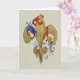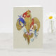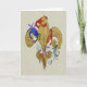 Cajun fleur de lis hälsningkort från original- konstverk. Rolig och nyckfull konst av krabbor, räkan, kräftor och ostroner som hänger all på en guld- fleur de lis.