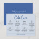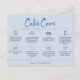 A calm dusty blue cake care guide designed for bakery business packaging. Simple icons and elegant script typography create a clean, trustworthy look while clearly sharing care instructions for handmade cakes. Minimal and soothing, this design reflects a gentle Japanese-inspired sense of balance and simplicity. 🎂💙✨