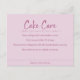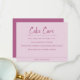 Cake Care Instructions Pink Simple Text Tack Kort