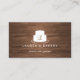 Cake Monogram Logotyp in White on Brown Woodgrain Visitkort