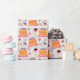 Dekorativ dagskaps- och bakverk som muffinsar, nötter, glass och lippor mönster med en blekt reflektionseffekt av utformningen mot vit bakgrund.