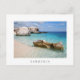 Postkort för stora sten i vatten och i Cala Mariolu Beach i Bukt i Orosei vid Emerald Kusten på ön Sardinien i Medelhavet, Italien med ett vitt gräns och texten: "Sardinien".