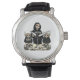 Time takes on a whimsical twist with this unique Calavera & Coo design. Featuring sugar skull artistry with a modern edge, this watch showcases an iconic scene of skull-faced characters in street style, complete with their adorable bovine companions. Perfect for fans of Día de los Muertos aesthetics, alternative fashion, and anyone who appreciates art that celebrates life with a touch of the macabre. The striking black and cream color palette with vibrant floral accents makes this timepiece a conversation starter that's equal parts edgy and endearing.