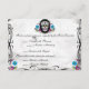 Calaveras Socker Skalle & Flourishes Mottagningskort. Har en Muerte Dia De los Muertos Socker Skalle, starkt färgade blommor omgivna av eleganta flourishes. Bakgrunden är en grå/vit distressed look! Original Illustration Av Julie Farrell 2012. Vänligen kopiera eller reproducera inte utanför Zazzle på grund av upphovsrättsliga skäl.. Fantastisk design för det rockiga Día de Muertos-bröllopet!