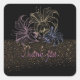 pegatina cuadrada que pega contigo especial para ocasiones y firaciones hecha con textura negra y flores de färg variados con purpurina multifärgad Puedes usarla para un envío especial.