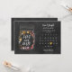 Den här söten sparar datumkortet med en blommofylld mynning burk bredvid en kalender och söt guld kärlek med ett hjärta som belyser ditt speciella datum med en kritbordsbakgrund.