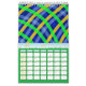 Calendario con diseño de arte digital de variados colores, en cada mes.