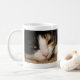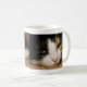 Kaffet mugg med Macy, en ung, fullt-blodig Calico-katt har klättrat under ett matta-tänkande som hon gömmer, för att leka. Visste du att bara den kvinnliga Calicos alla tre färger (brun, svart och vit)? Male Calicos har bara svart och vitt. Tittar du fler utskrifter eller produkter? Besök gärna min butik: http://www.zazzle.com/timelessmomentsphtgy Det här fotot togs av Jennifer White med Timless Moments Photography. Alla bilder är upphovsrättsskyddade © Timless Moments Photography/Jennifer White. Alla höger reserverade.