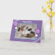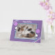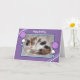 Ett Calico-katts födelsedagskort för en kattälskarbild, eller byt ut mot din egen Behålla. Designad i lila, vit, blå, med rand och punkter. Grattis på födelsedagen Upplev din dag **Exempelbild ©Lynnrosedesign**