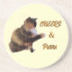 A playful coaster featuring a calico cat reaching out for a handshake, paired with the word “Cheers & Purrs.” Perfect for cat lovers, party hosts, or anyone who enjoys a little personality with their drinkware.