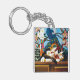 En kaliko-katt leker med en röd kinesisk drake framför ett fönster av nedfläckad för påk.